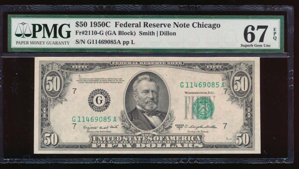 One 1950C $50 Chicago Federal Reserve Note PMG 67EPQ.