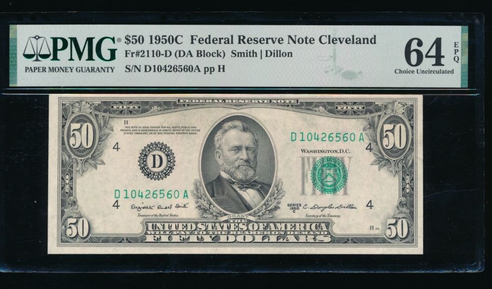 One 1950C $50 Cleveland FRN PMG 64EPQ.