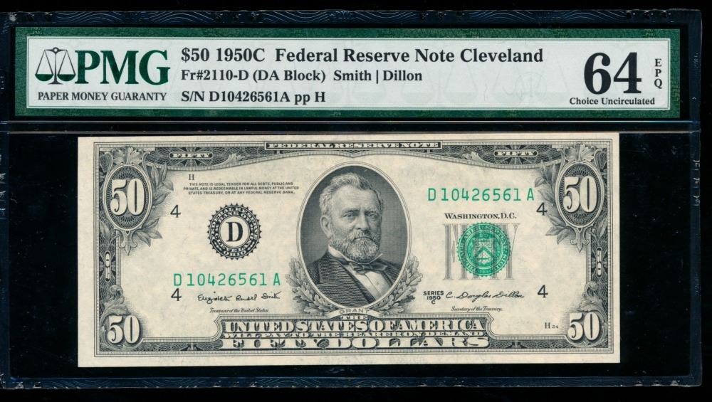 One 1950C $50 Cleveland FRN PMG 64EPQ.
