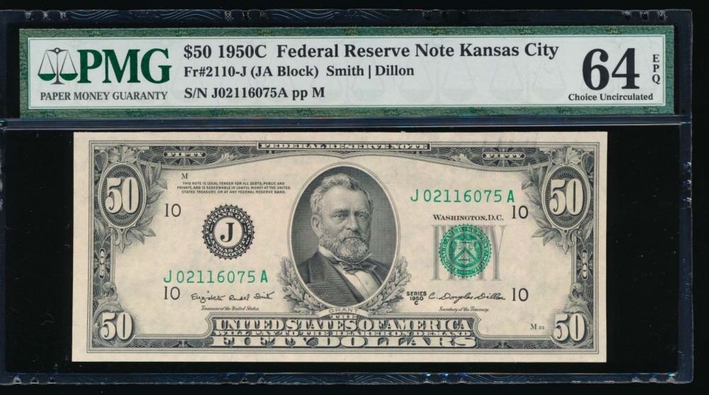 One 1950C $50 Kansas City Federal Reserve Note PMG 64EPQ.