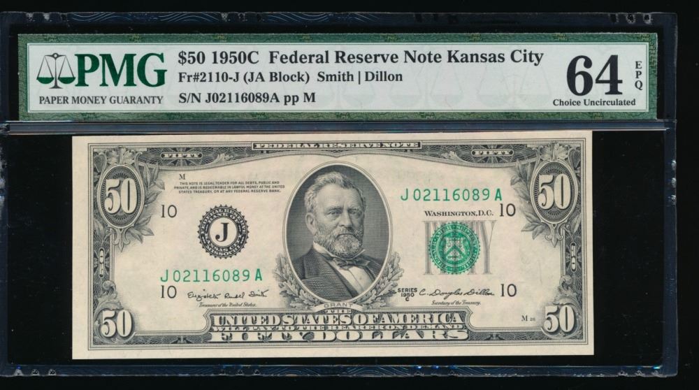 One 1950C $50 Kansas City Federal Reserve Note PMG 64EPQ.