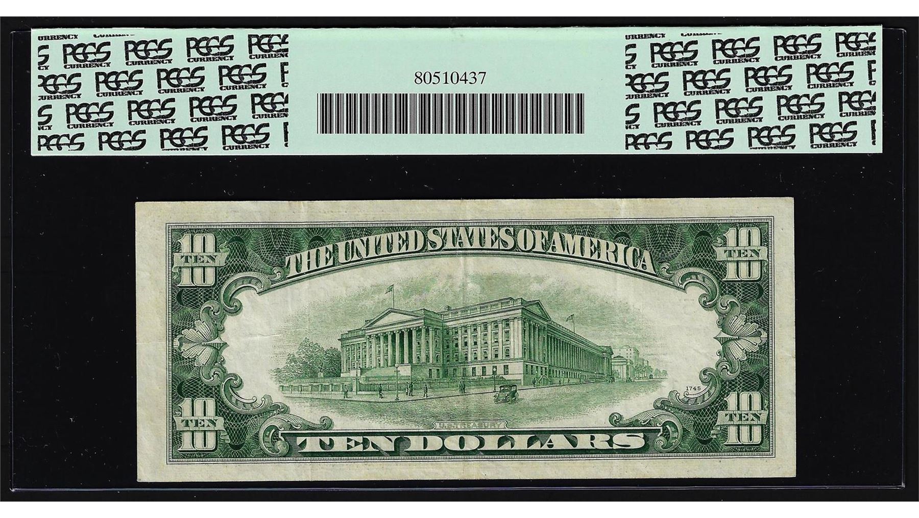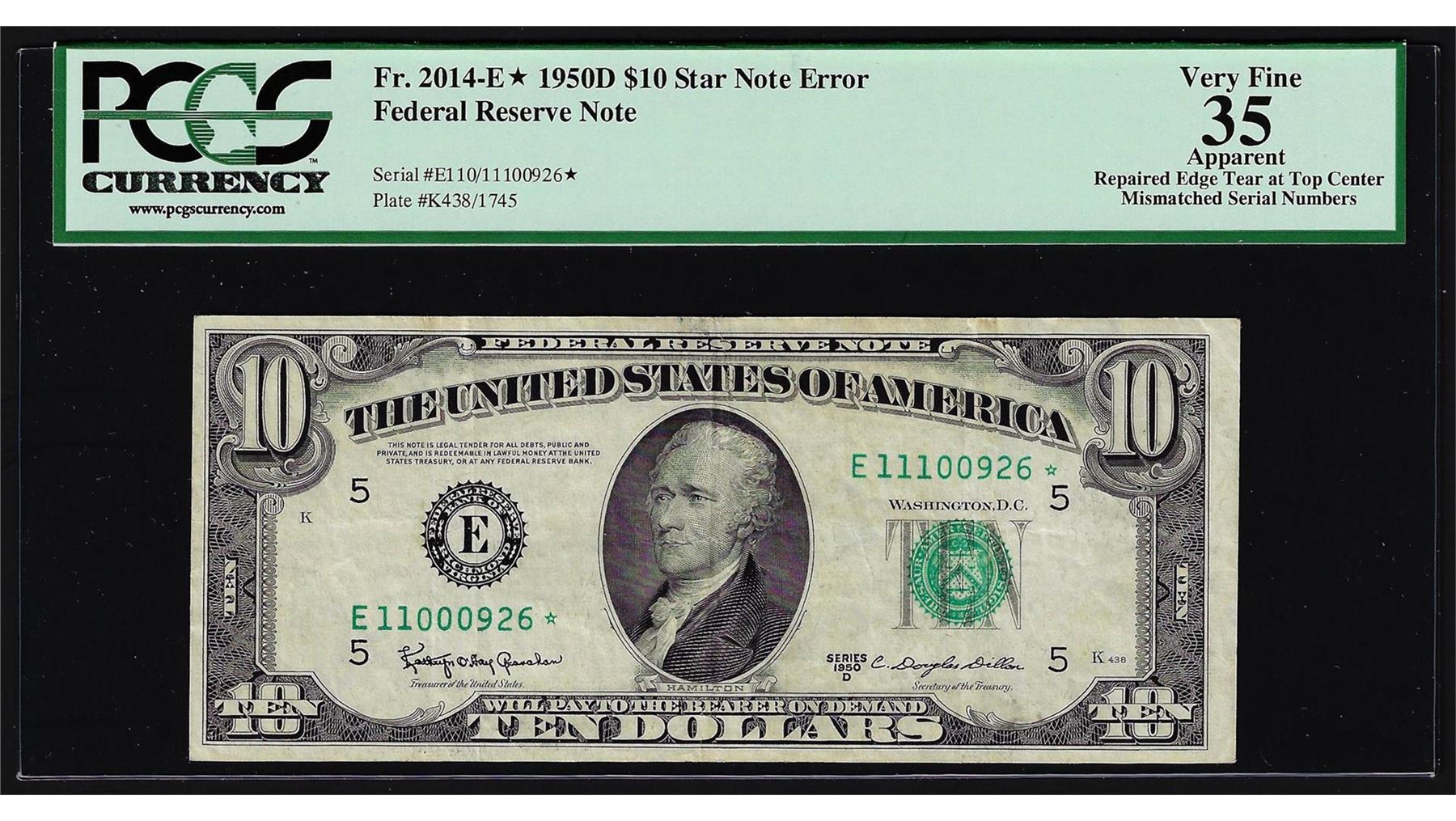 One 1950D $10 Federal Reserve STAR Note Mismatched Serial Number ERROR PMG VF35 Apparent. PMG Certified.