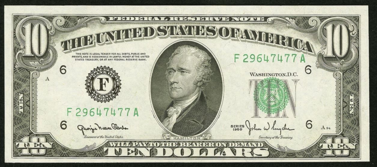 One 1950D $10 Wide Federal Reserve Note.