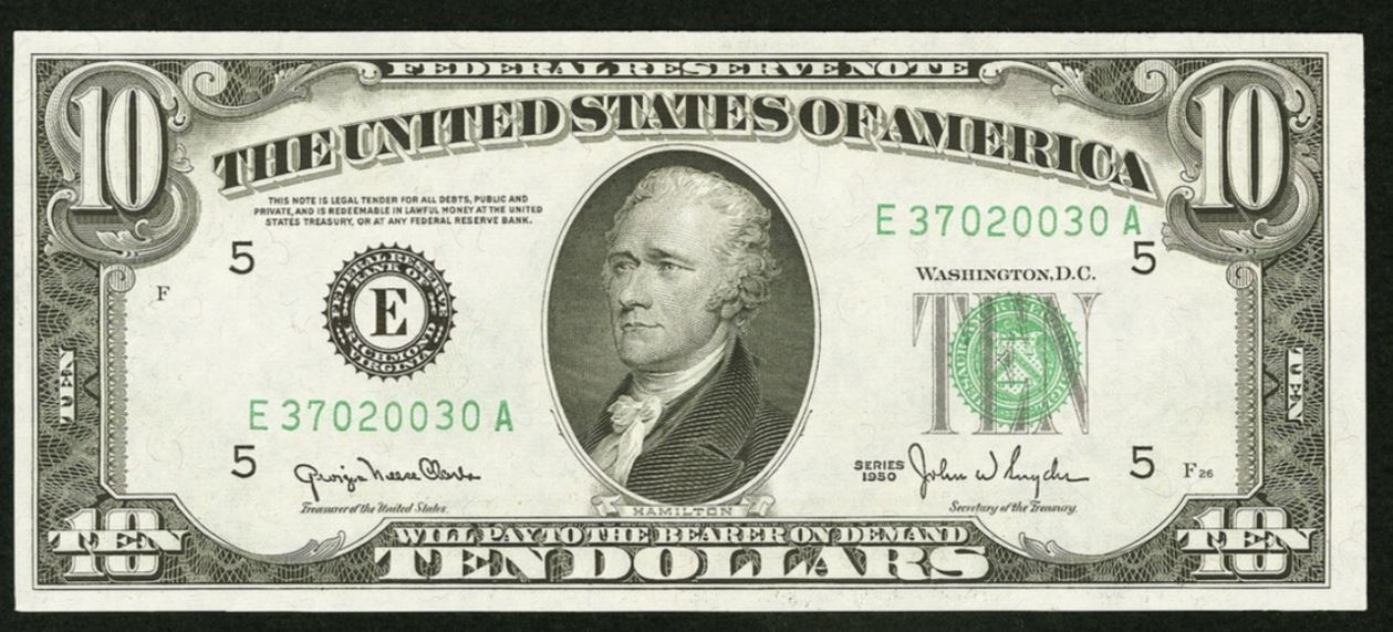 One 1950D $10 Wide Federal Reserve Note.