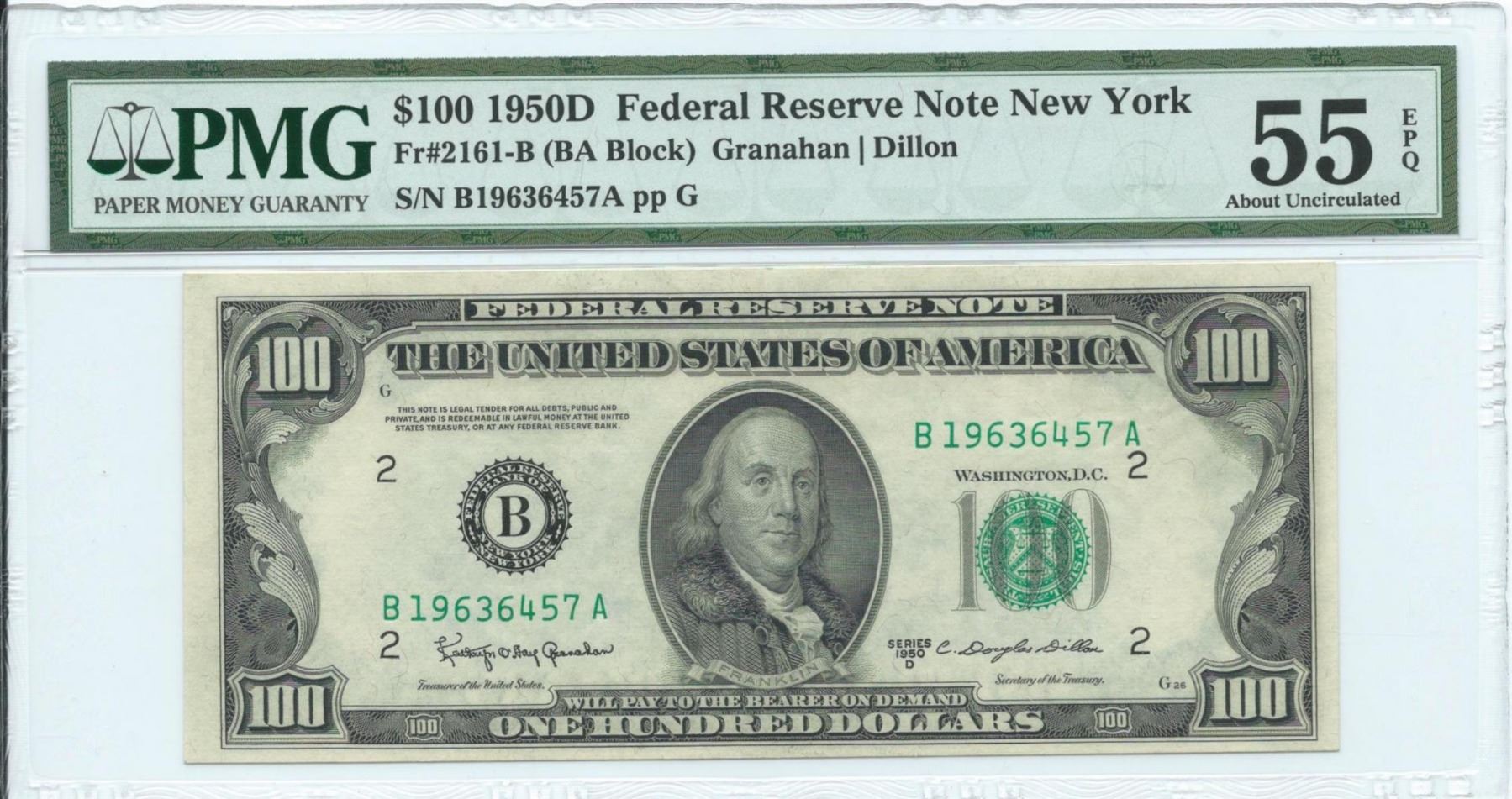 One 1950D $100 Federal Reserve Note New York - 55 About Uncirculated