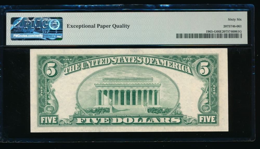 One 1950D $5 Chicago FRN PMG 66EPQ.