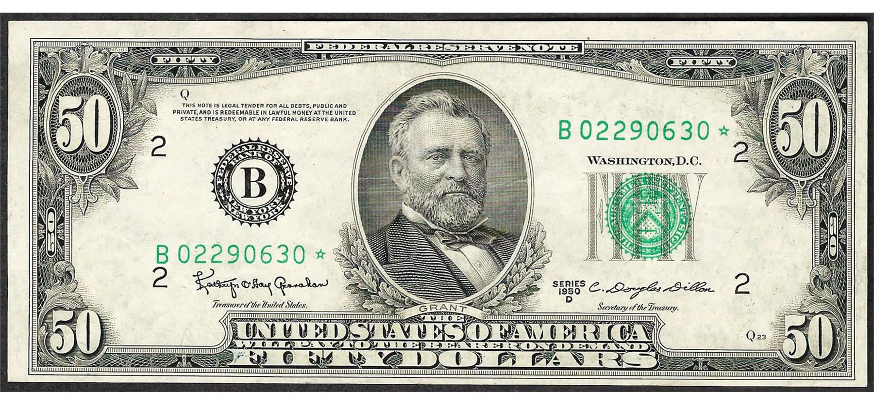 One 1950D $50 Federal Reserve STAR Note.