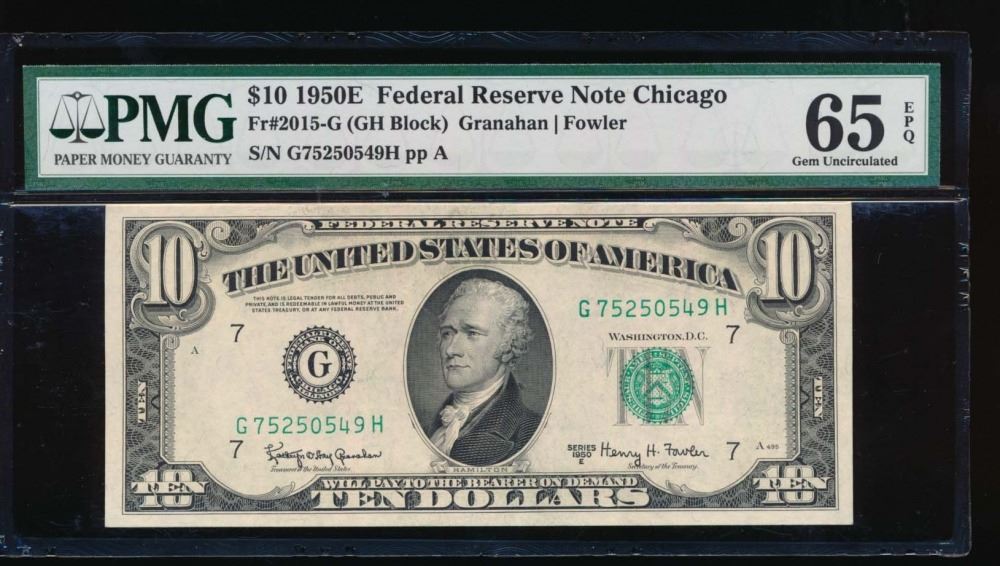 One 1950E $10 Chicago Federal Reserve Note PMG 65EPQ.