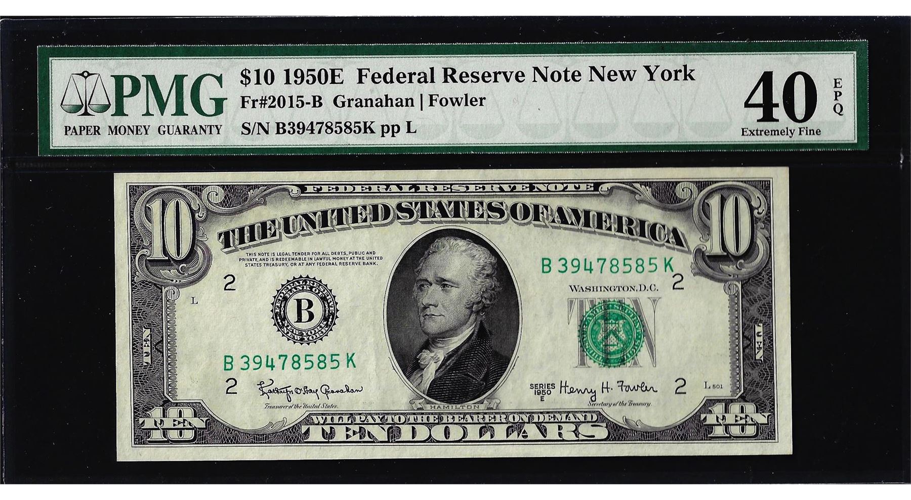1950E $10 Federal Reserve Note New York Fr.2015-B PMG Choice Extremely Fine 40EPQ