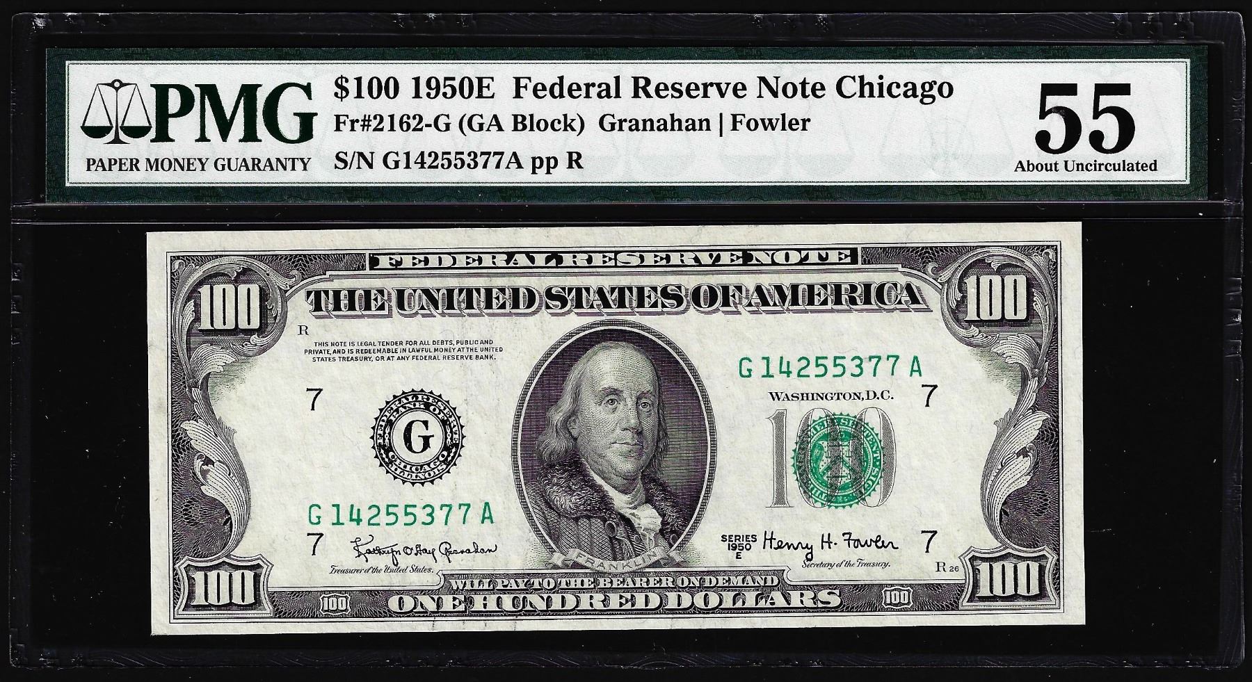 One 1950E $100 Federal Reserve Note Chicago Fr.2162-G PMG About Uncirculated 55.