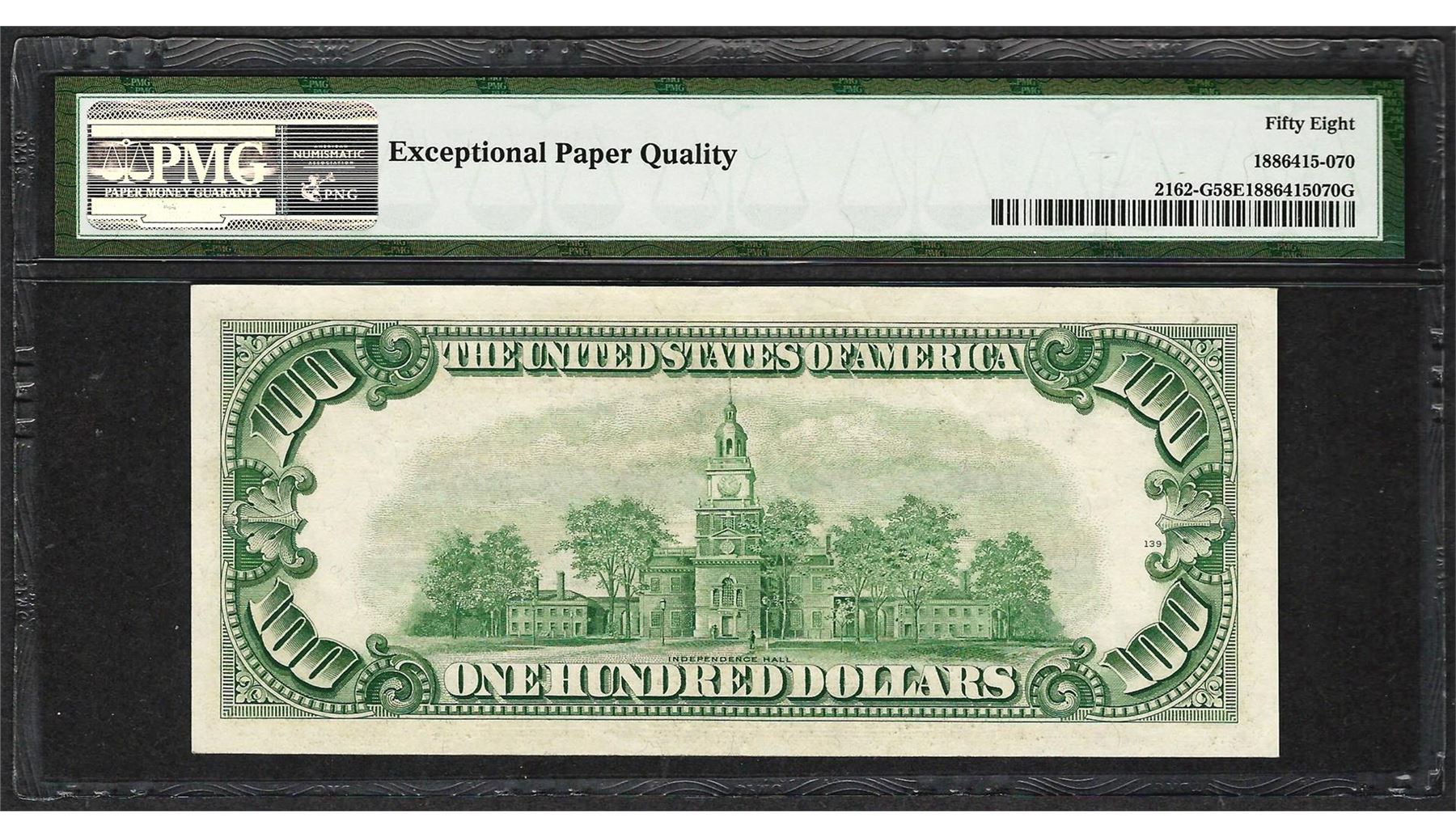 One 1950E $100 Federal Reserve Note Chicago Fr.2162-G PMG About Uncirculated 58EPQ. PMG Certified.