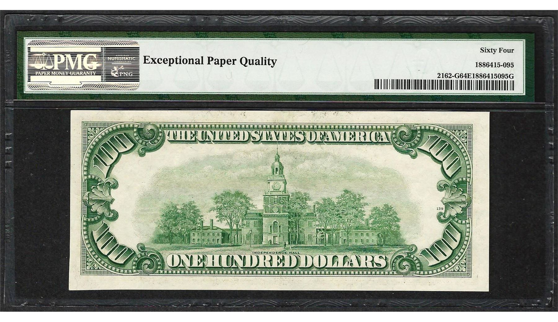 One 1950E $100 Federal Reserve Note Chicago Fr.2162-G PMG Choice Uncirculated 64EPQ. PMG Certified.