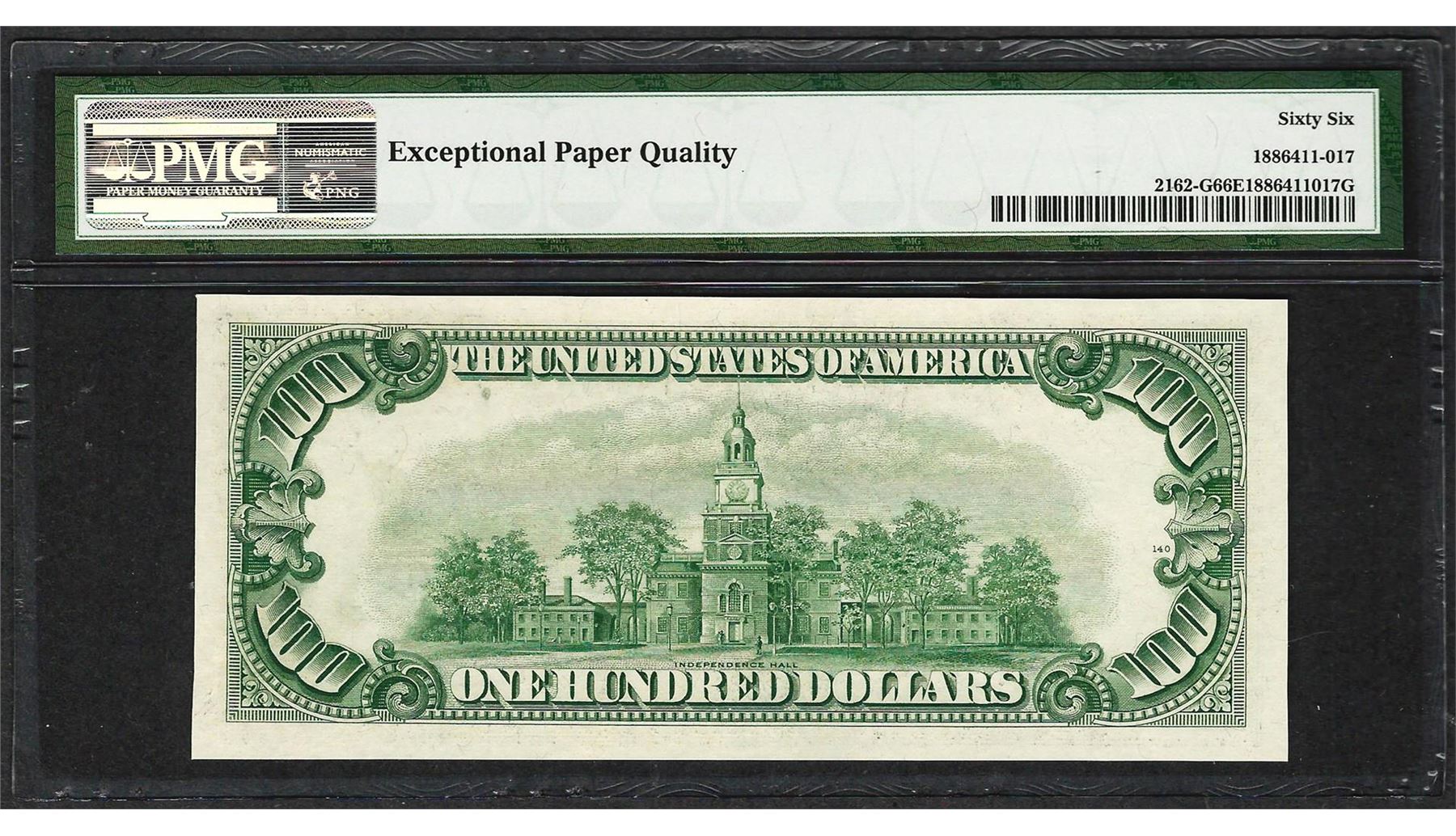 One 1950E $100 Federal Reserve Note Chicago Fr.2162-G PMG Gem Uncirculated 66EPQ. PMG Certified.