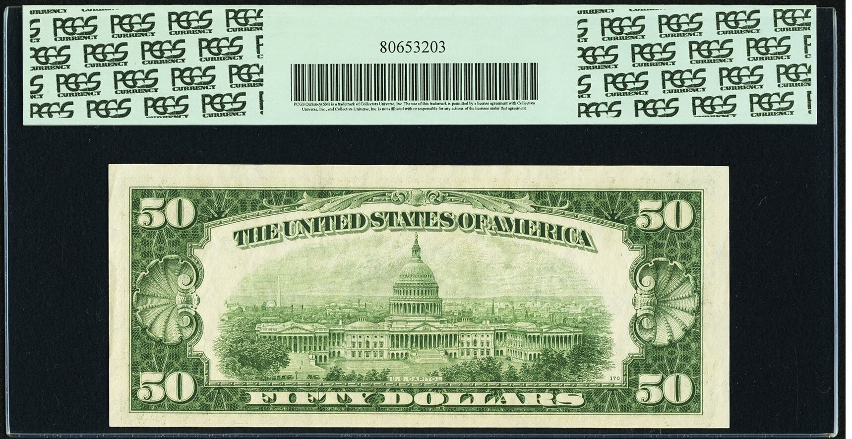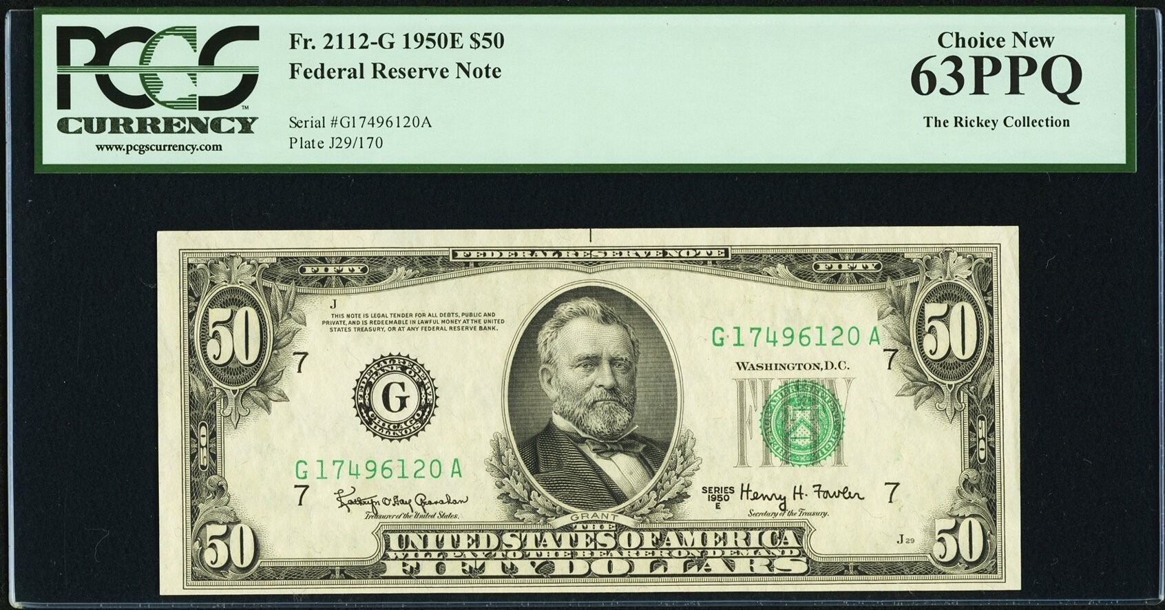 One 1950E $50 Chicago Federal Reserve Note PCGS 63PPQ.