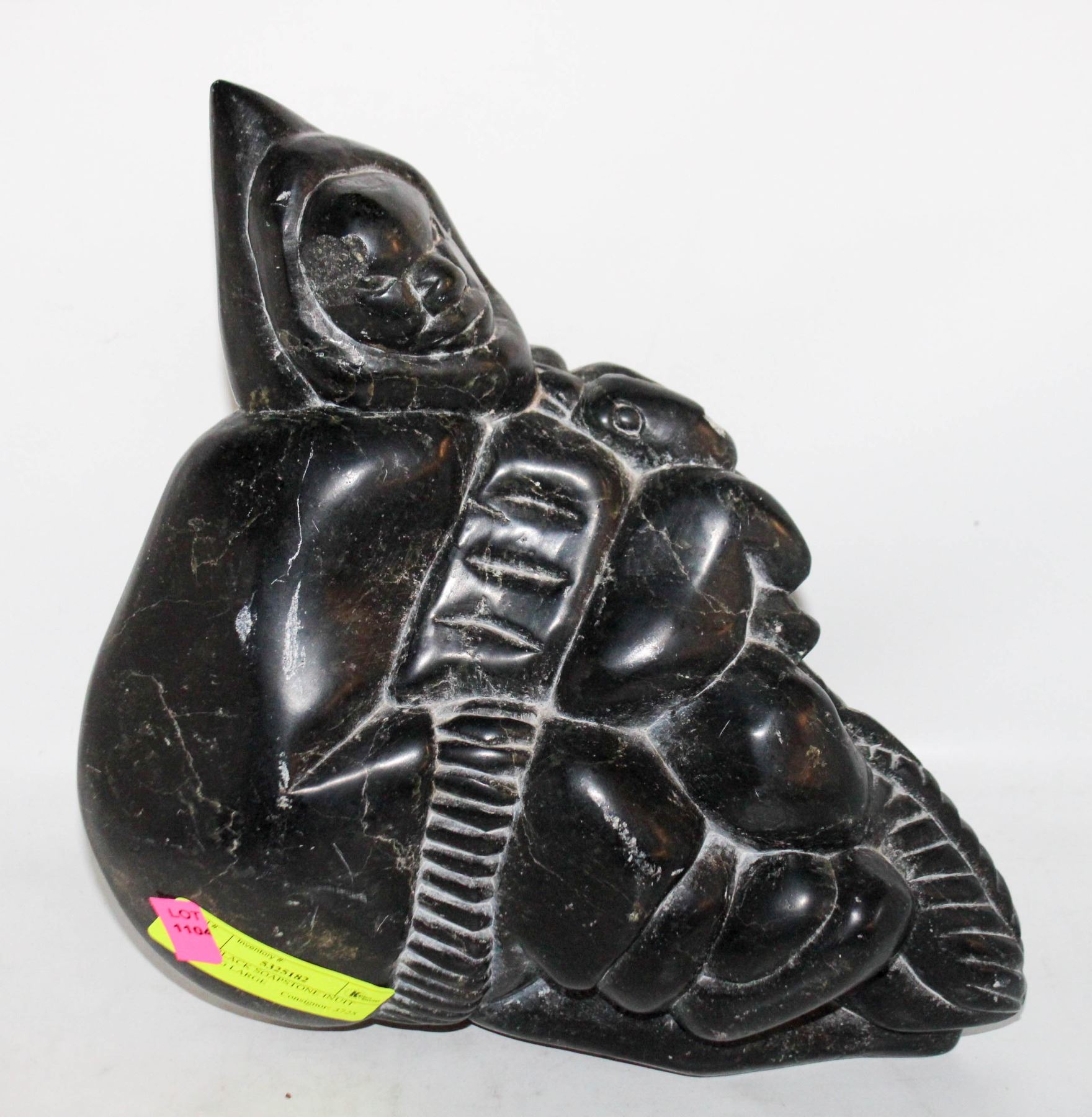 1950S BLACK SOAPSTONE INUIT CARVING LARGE