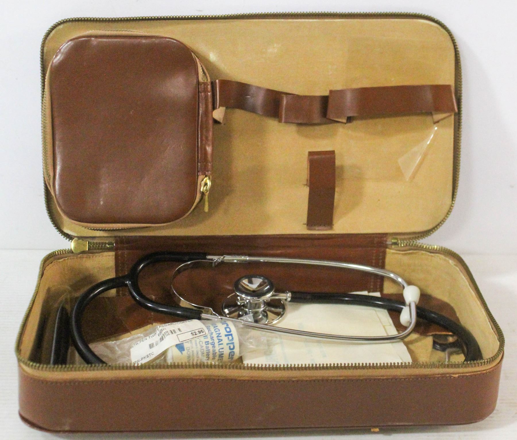 1950S DOCTORS STETHOSCOPE IN LEATHER CASE