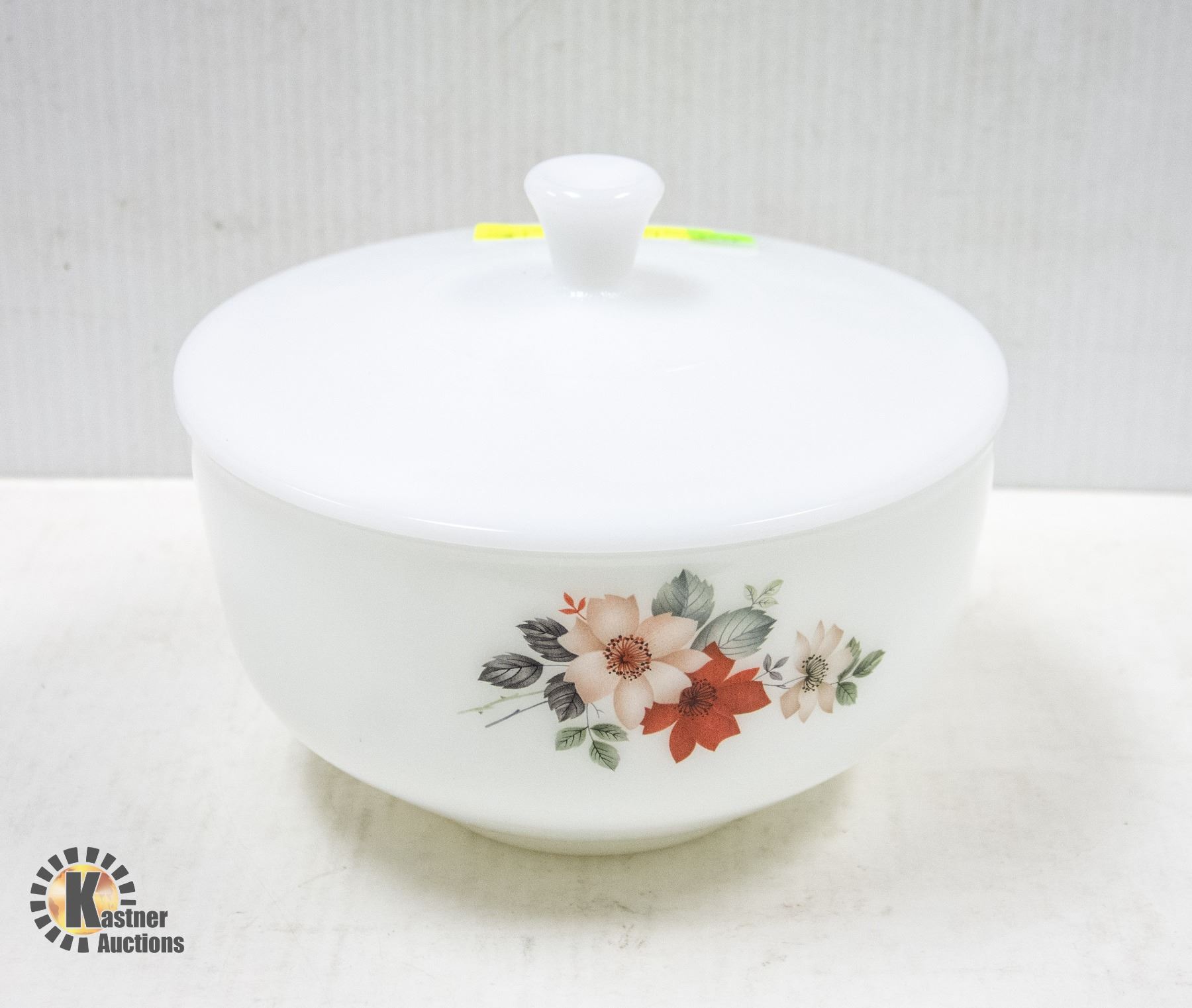 1950S FIRE KING CASSEROLE DISH WITH LID