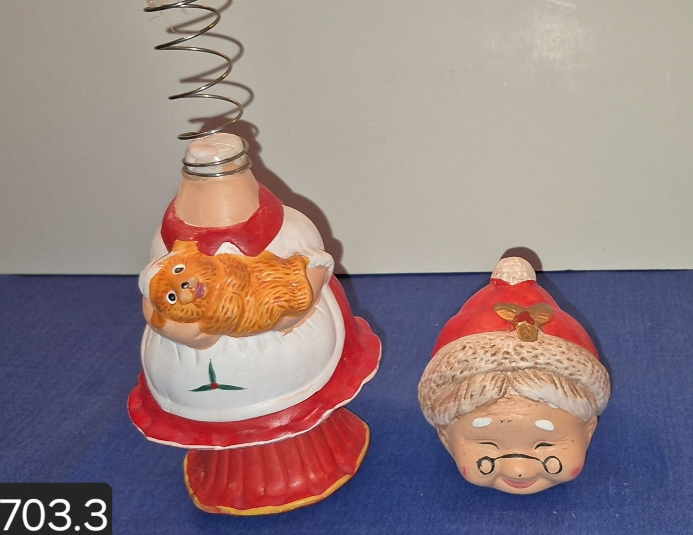 1950s/60s bisque Mrs. Claus "double" bobblehead nodder. Both top parts move separately.