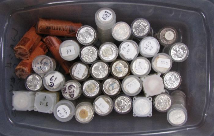 A once-in a lifetime chance to acquire 1400+ UNSEARCHED (in 35 rolls) choice to gem BU Washington SILVER quarter dollars; many MS66s or higher likely included; individual book values up to $1000 per coin or more; opening bid at only 65% premium over silver melt value! WE JUST DON'T HAVE TIME TO SEARCH THRU THESE AND YOU GAIN AS A RESULT!