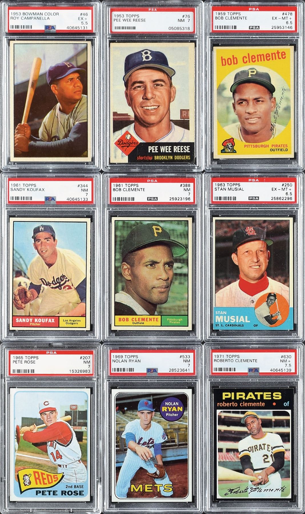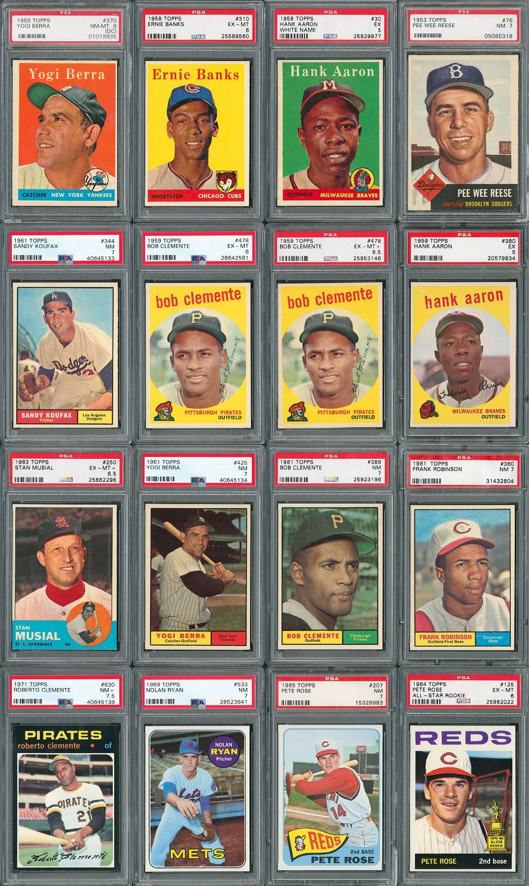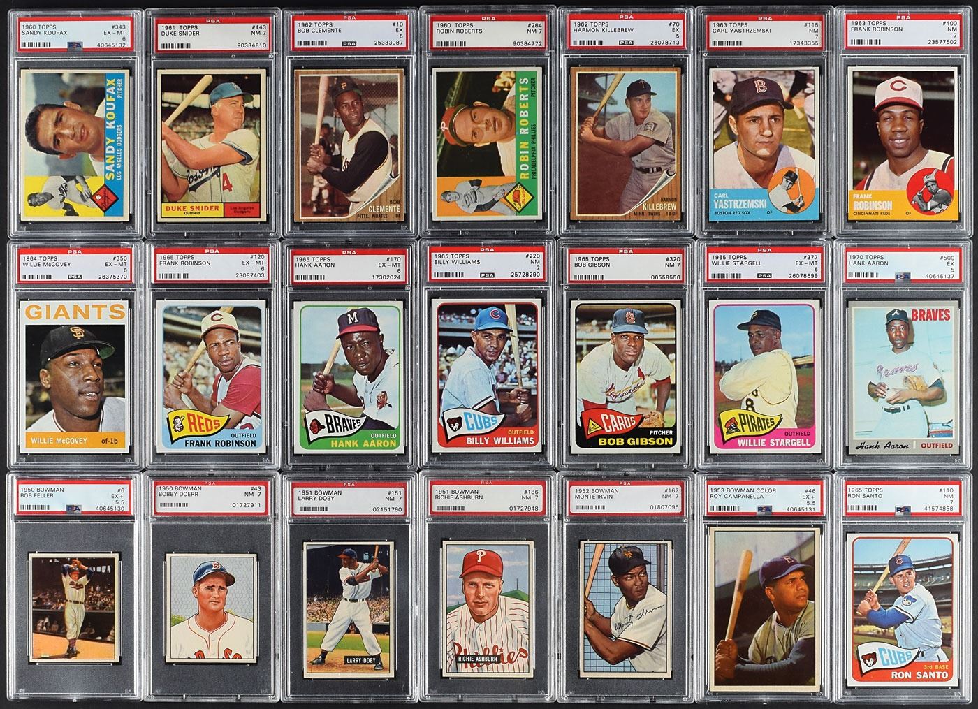 Hall of Famers and other superstars are included in this recently PSA-graded lot of 40 cards.
