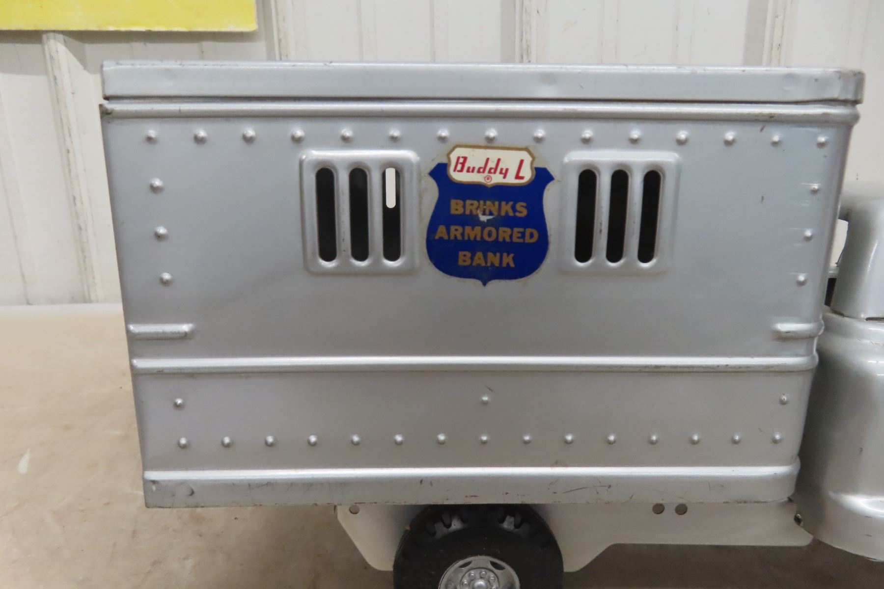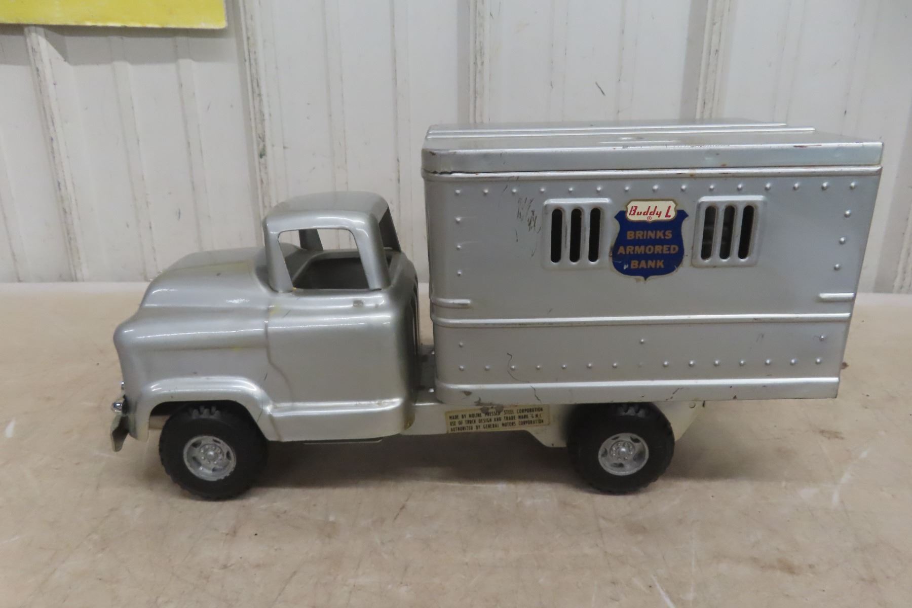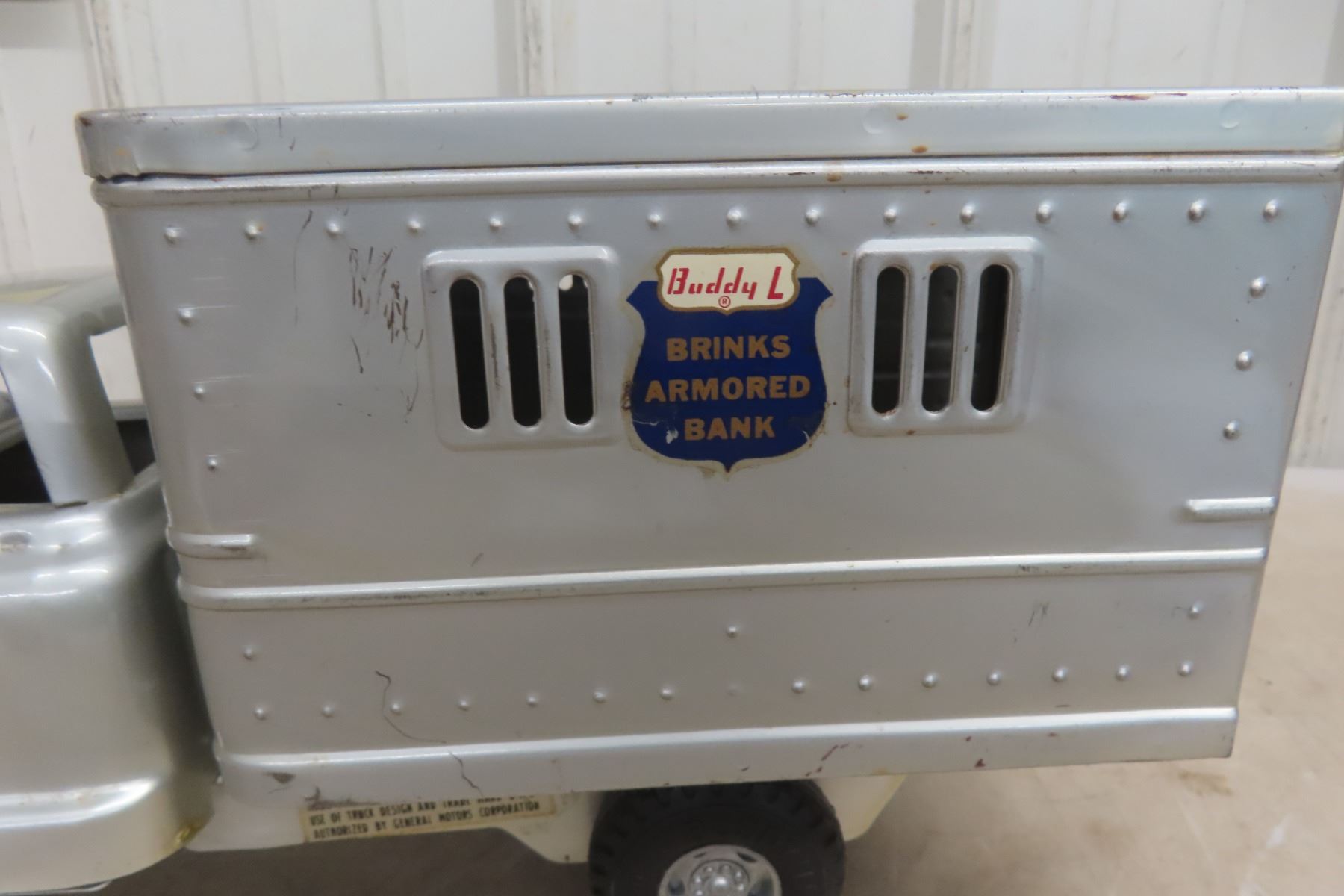 1950s Buddy L Brinks Armored Bank GMC Pressed Metal Truck with Lock and Key 15'' Long