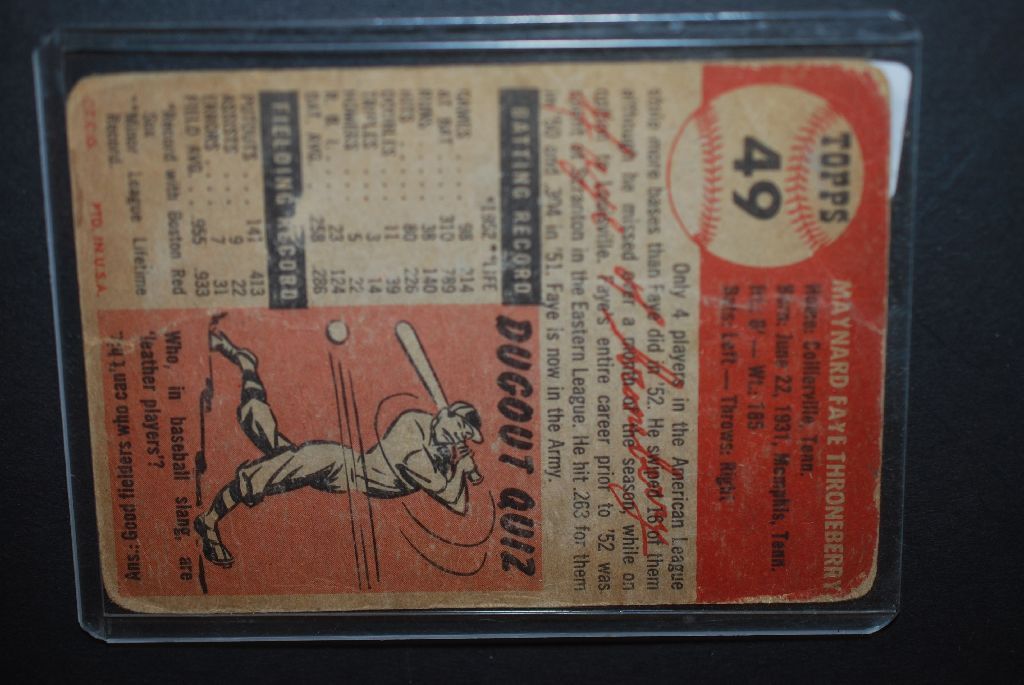 1950s MLB Faye Throneberry Boston Red Sox Baseball Trading Card; EST. $5-10