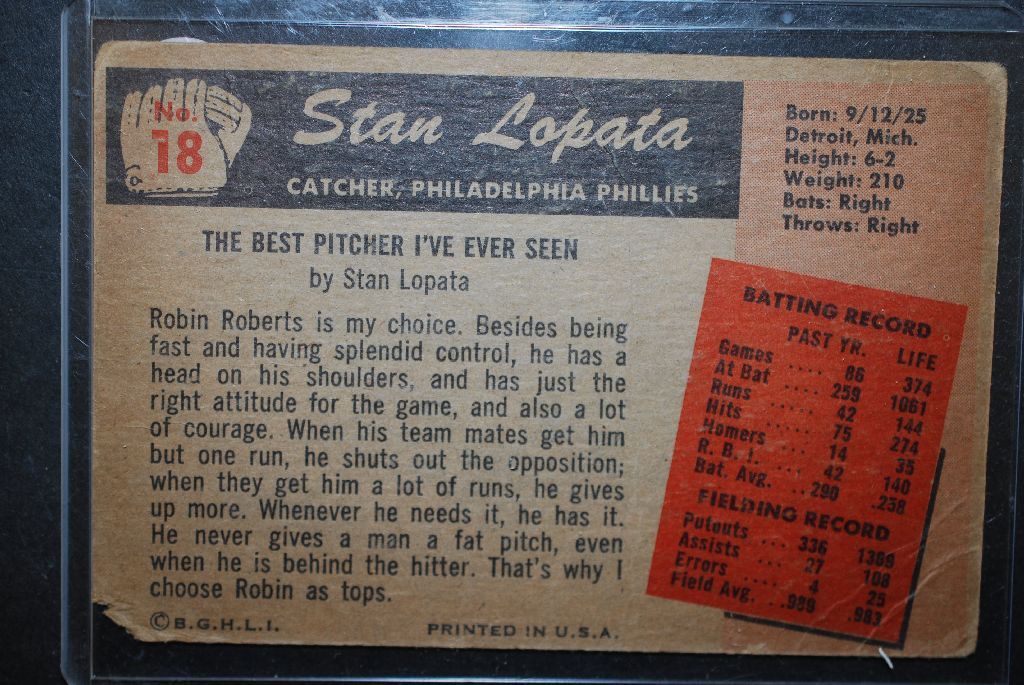 1950s MLB Stan Lopata Philadelphia Phillies Baseball Trading Card; EST. $5-10