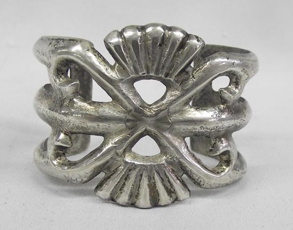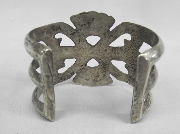 1950s Native American Navajo Sand Cast Bracelet. Measurement in Inches - Inside Length(Including Opening) 6'' x 1 3/4'' Width. Buyers Pay Actual Shipping and Handling Charges(see terms and conditions for more information).