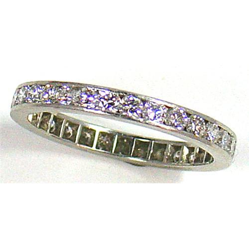 Platinum band set with 30 round full cut diamonds. Approximate total diamond weight is 1.25ct. Size 7, and 2.5mm wide.