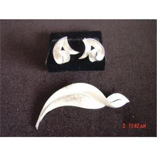 <tr><td>Title:1950s Silver Trifari Brooch Earrings Set</td></tr>