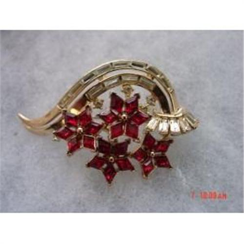<tr><td>Title:1950s TRIFARI Red Rhinestone Brooch TWINKLE LINE</td></tr>