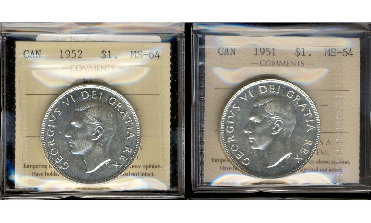 1951 $1 & 1952 ICCS MS64. Lot of 2 coins.