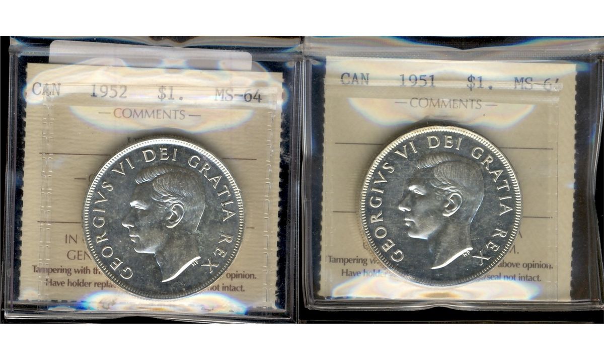 1951 $1 & 1952 ICCS MS64. Lot of 2 coins.