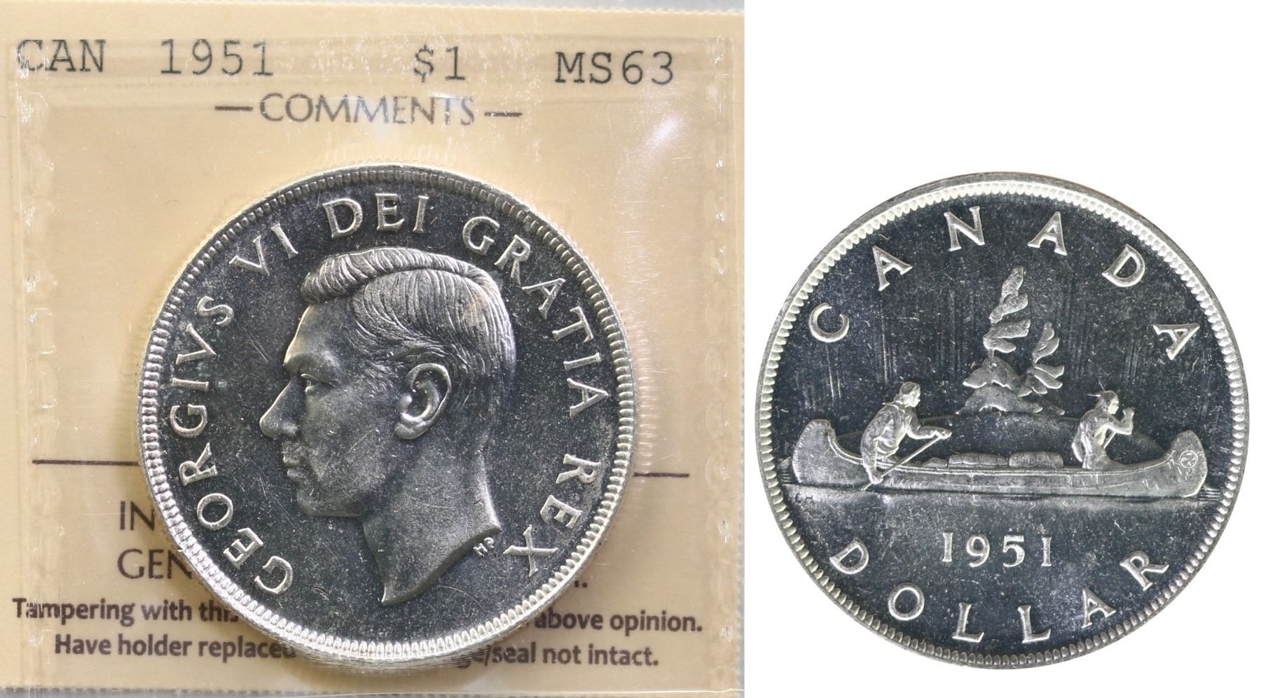 1951 $1 "5/5" ICCS Choice Mint State-63. Another interesting variety not often seen and offered. A brilliant and lustrous issue.