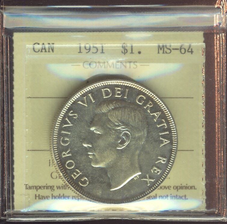 1951 $1 Arnp ICCS MS64. Looks better than the grade assigned.