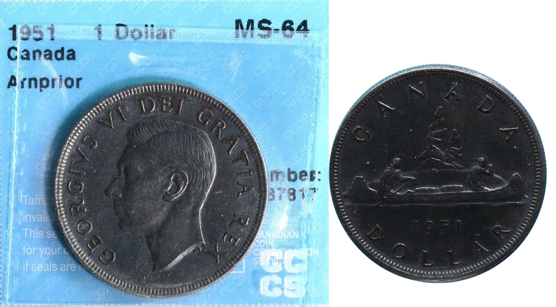 1951 $1 "Arnprior" CCCS Very Choice Mint State-64. Toned.