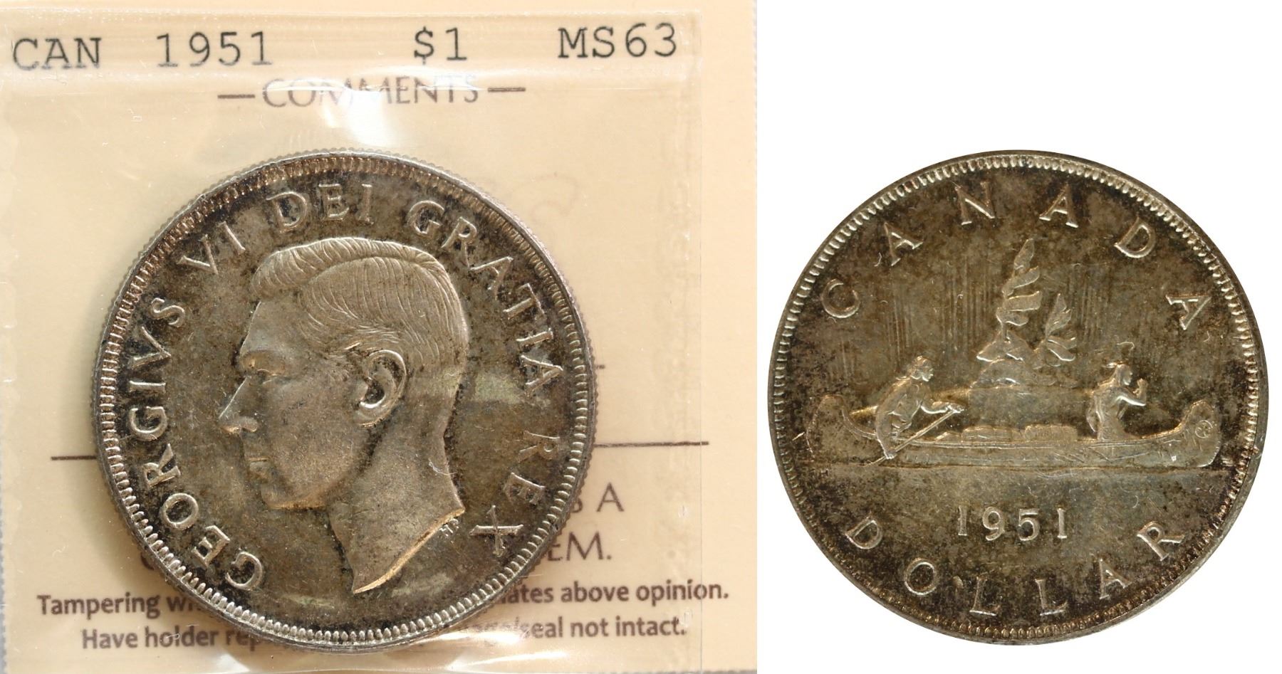 1951 $1 "Arnprior" ICCS Choice Mint State-63, Lightly toned.