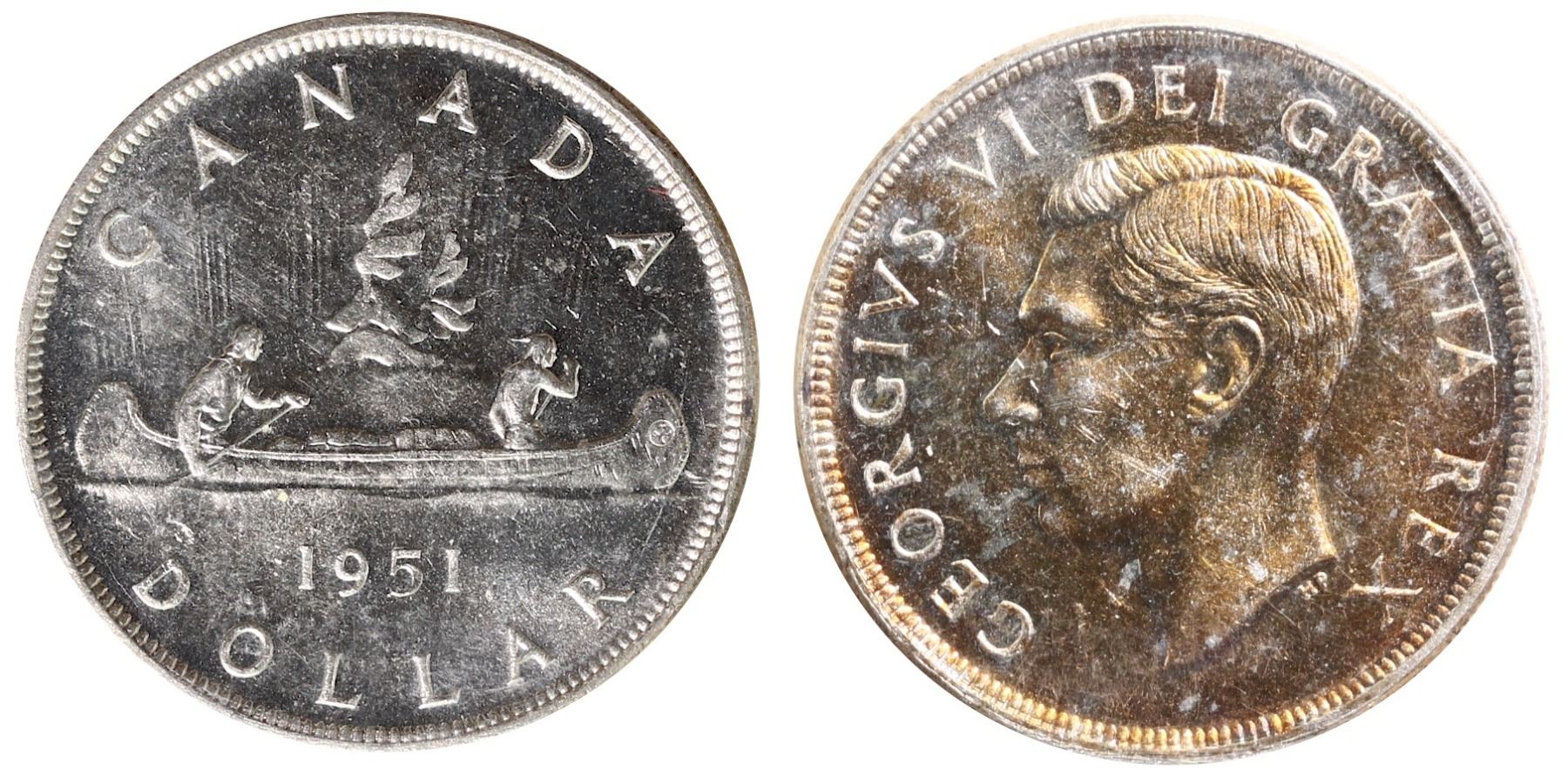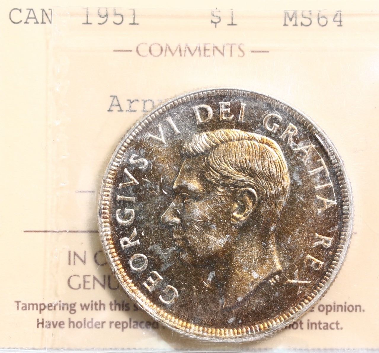 1951 1$ "Arnprior" ICCS Choice Mint State-64 Gold and russet tones over full underlying lustre.
