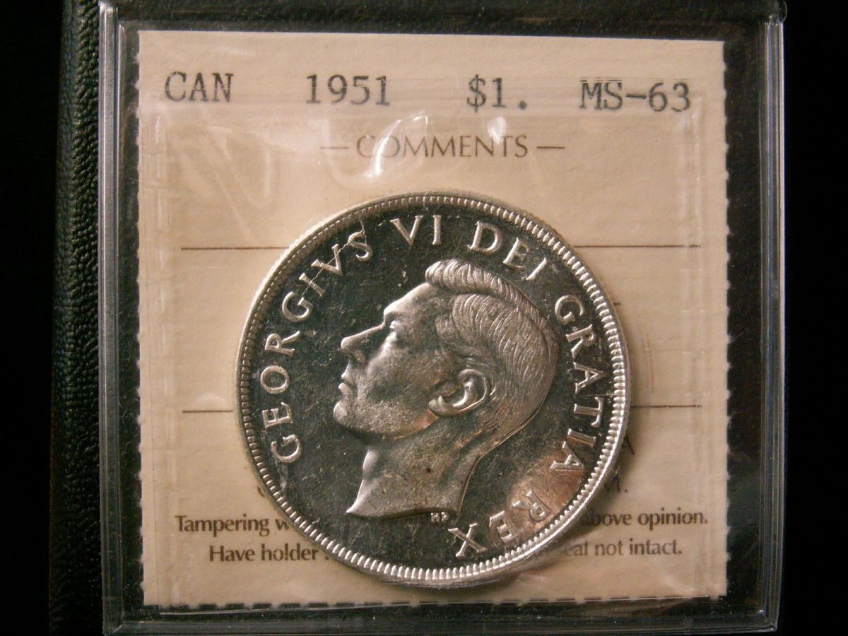 1951 $1 Arnprior ICCS MS63. Bright and lustrous coin.