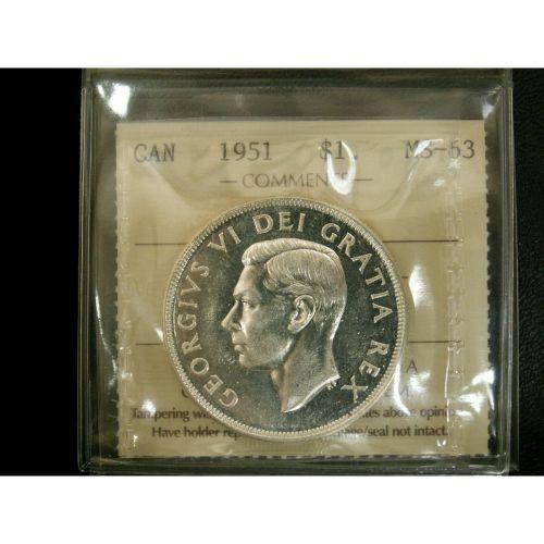 1951 $1 Arnprior ICCS MS63, fully white and lustrous