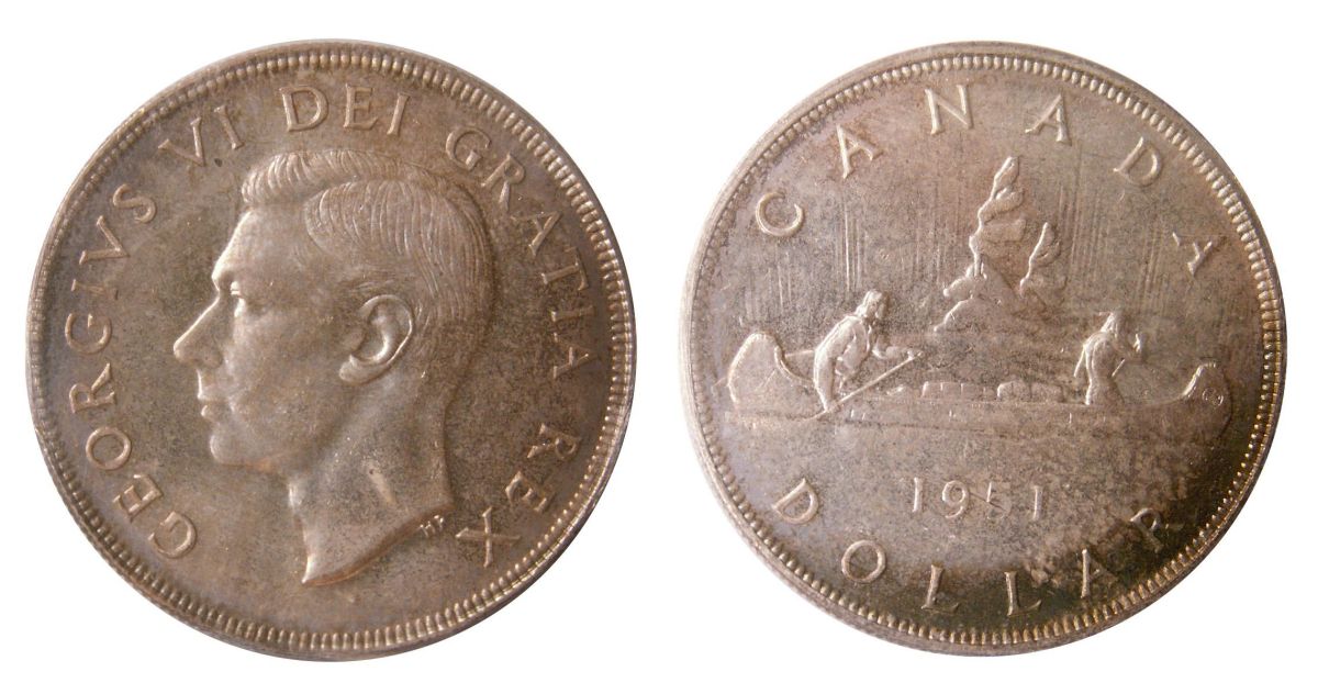 1951 $1 Arnprior ICCS MS65. Well struck with light golden tone. A lovely and very rare Gem example. Tied for finest.