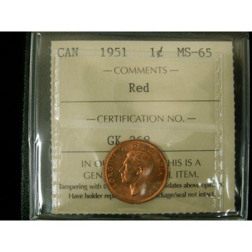 1951 1¢ ICCS MS-65 Red, a superb example with nice fields.