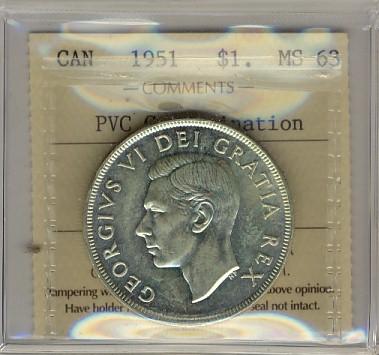 1951 $1 ICCS MS63 PVC Contamination