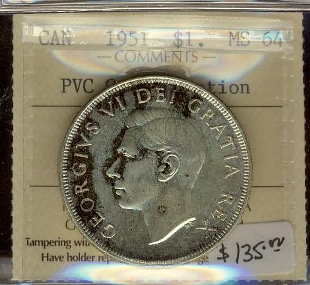 1951 $1 ICCS MS64 PVC Contamination