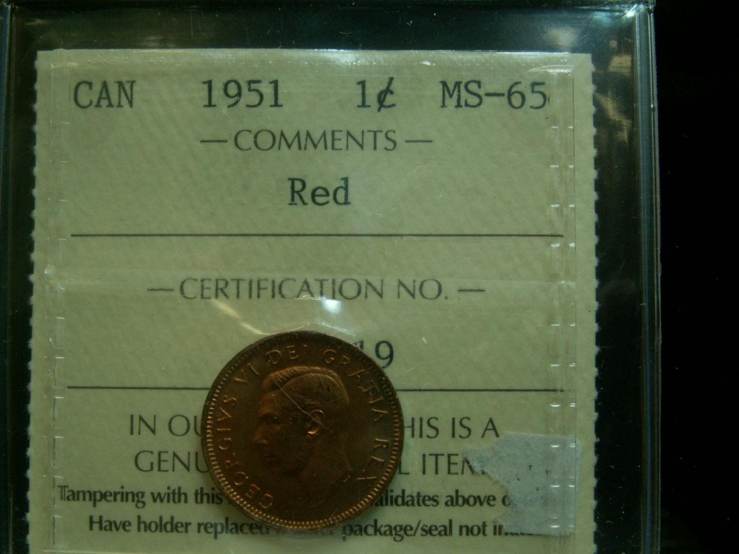 1951 1¢ ICCS MS65 Red