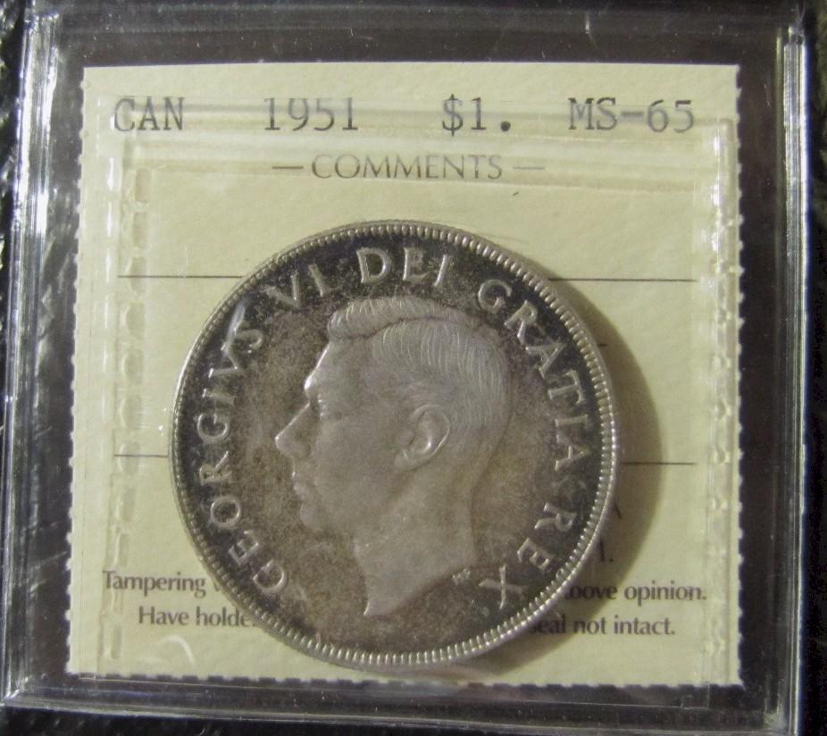 1951 $1 ICCS MS65. Subliem toning and eye appeal.