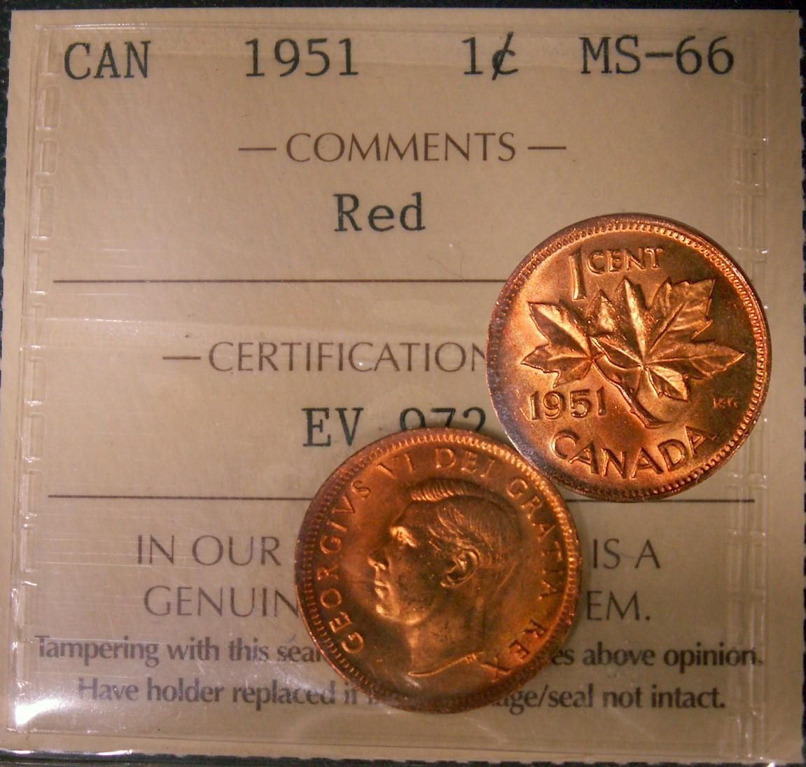 1951 1¢ ICCS MS66 Full Red, A superb GEM example.