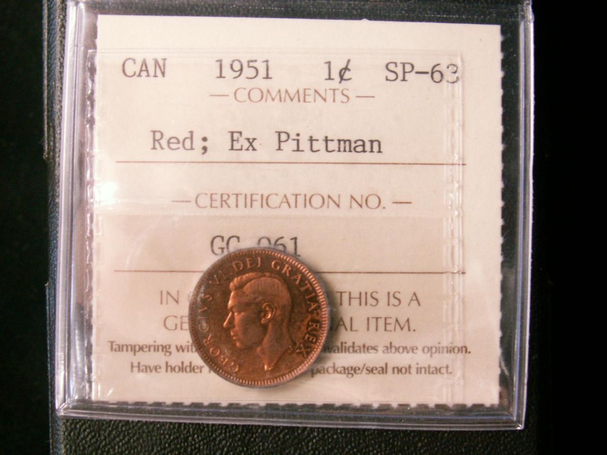 1951 1¢ ICCS SP63RD. Pittman example.