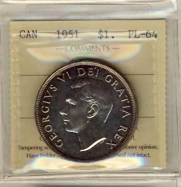 1951 $1 SWL ICCS PL64. Nice example with reflective surfaces. A popular variety.