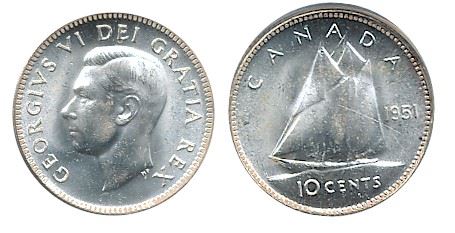 1951 10¢ PCGS MS65. Sharp full white issue.